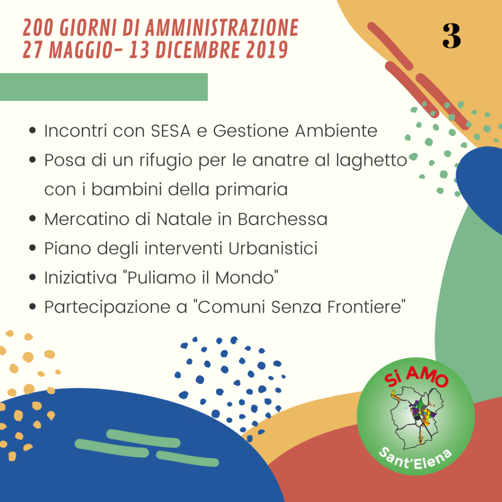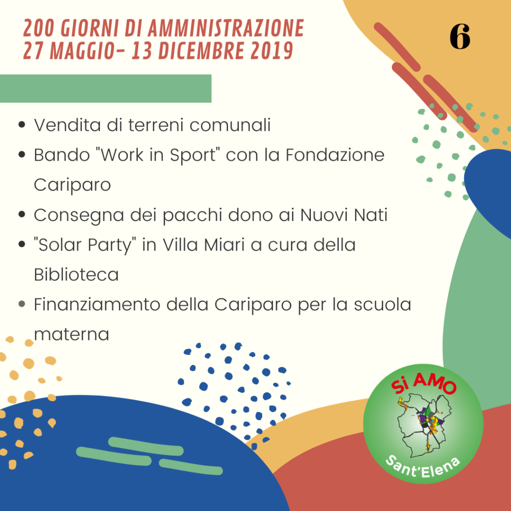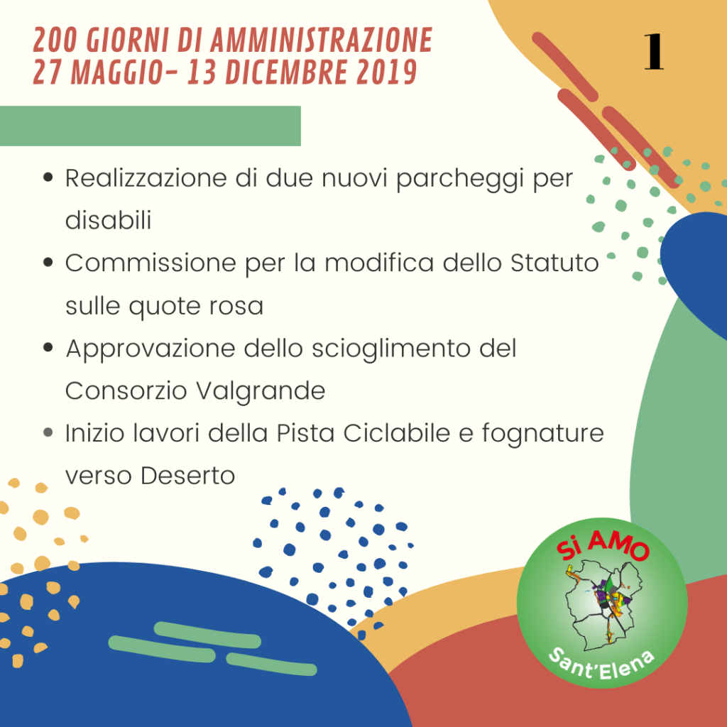 Ecco le opere e gli eventi che abbiamo realizzato, gli incontri ai quali abbiamo partecipato, gli interventi e le decisioni prese in questi 200 giorni di amministrazione!